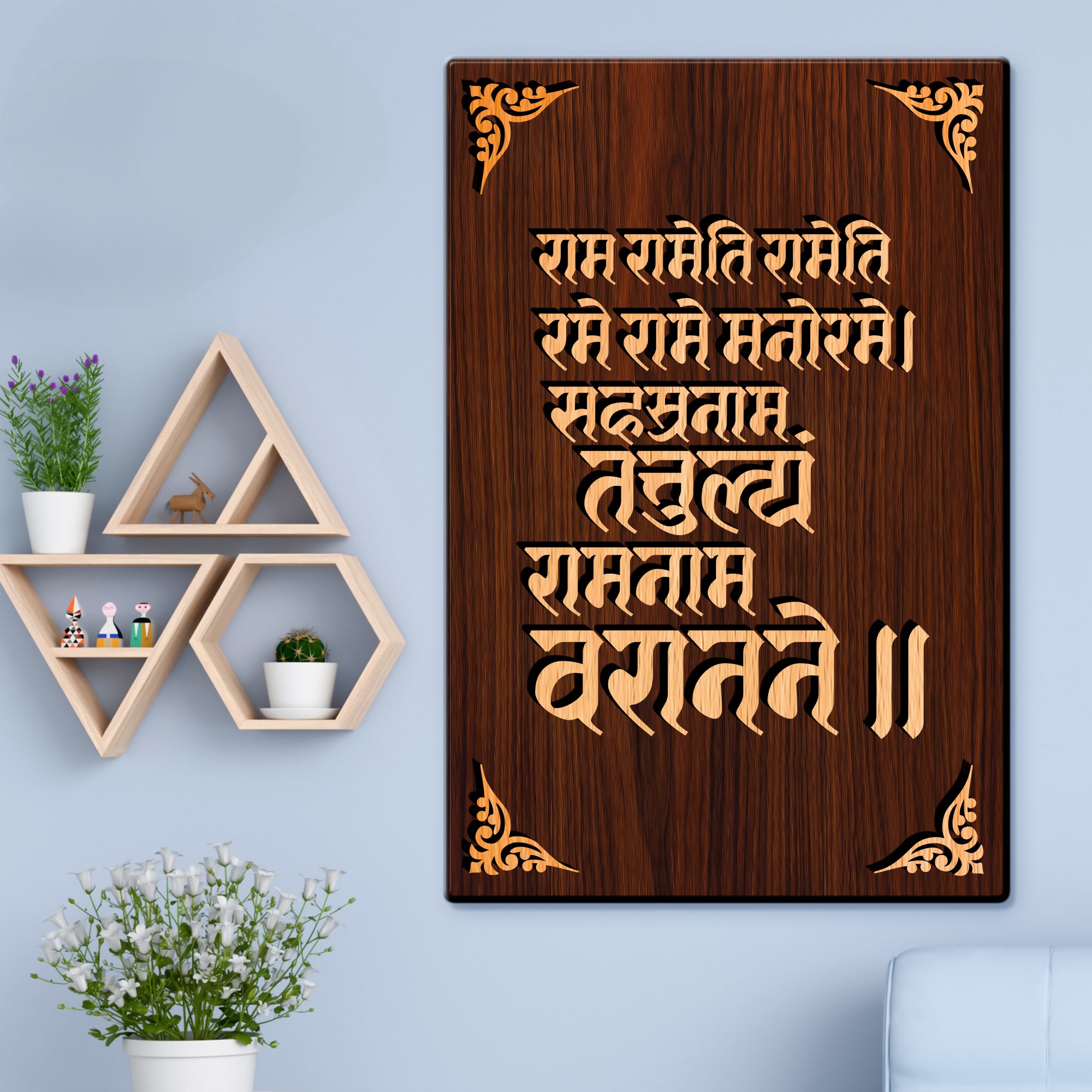 Ram Rameti Mantra For Gifting and Home Decor Wooden Wall Decor, Wall Hanging - 190 - 8x12