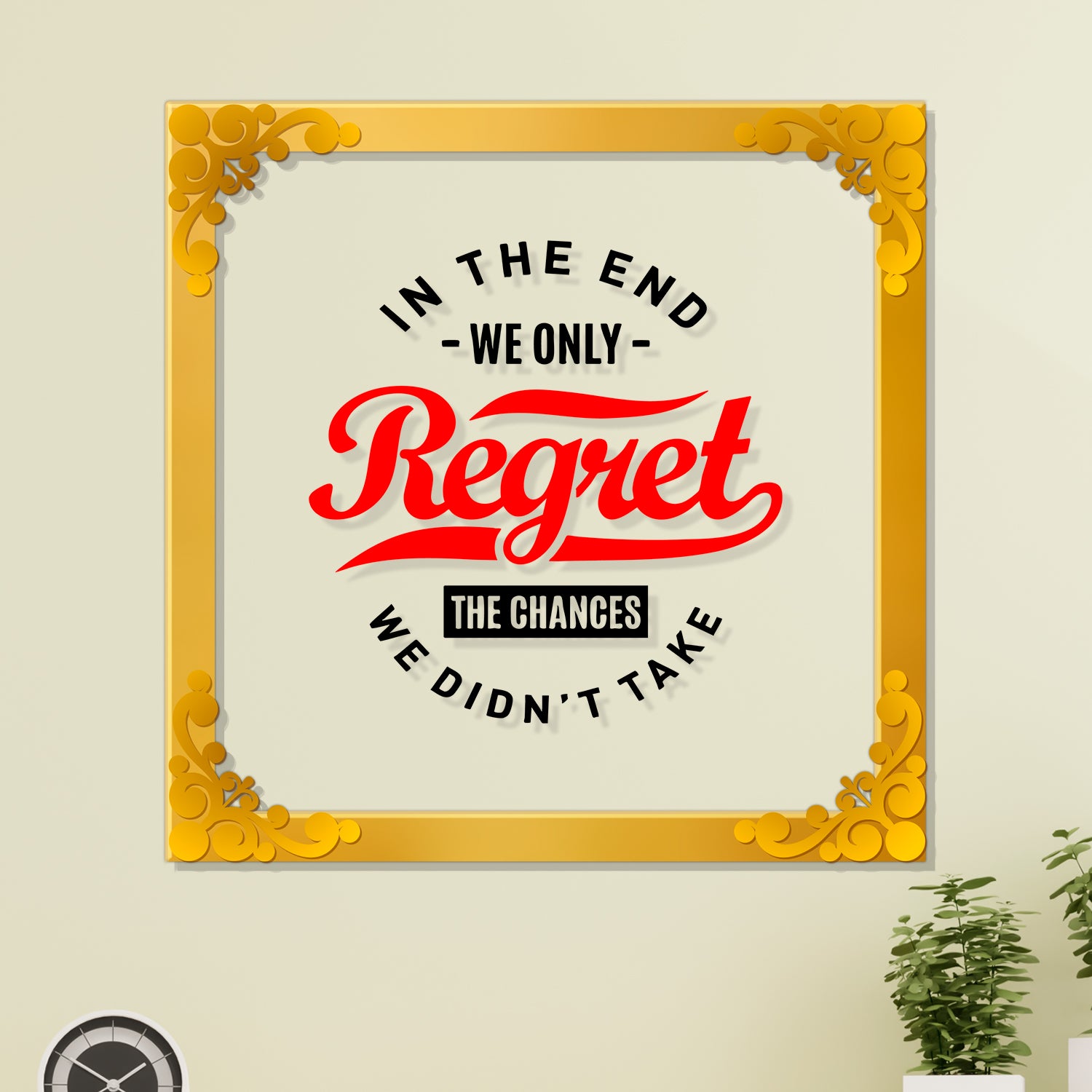 Regret Golden Plaque for Gifting, Wall Decor Clear UV print with Golden Border-32 - 8x8 inch