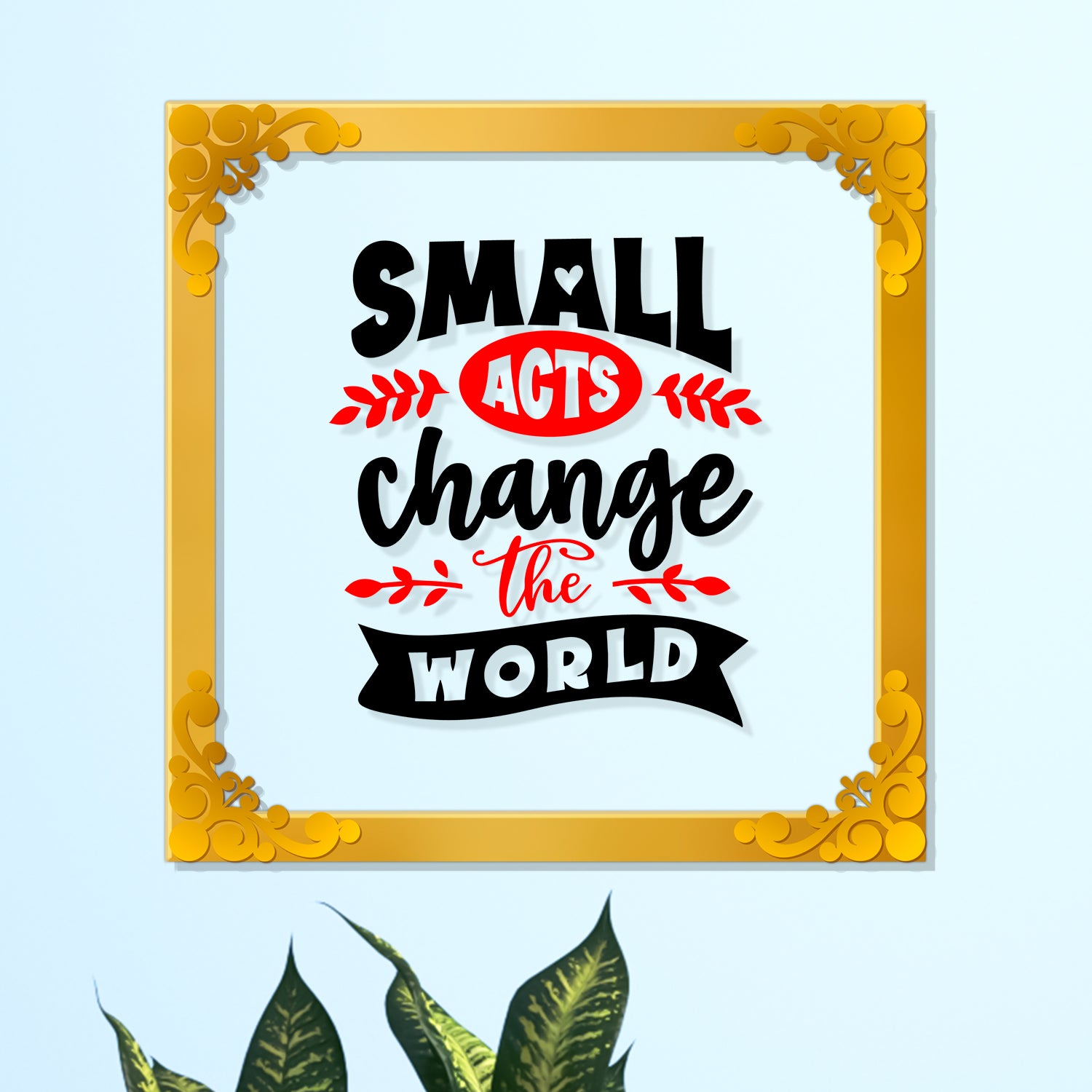 Small acts can change the world Golden Plaque for Gifting, Wall Décor Clear UV print with Golden Border-247 - 8x8 inch
