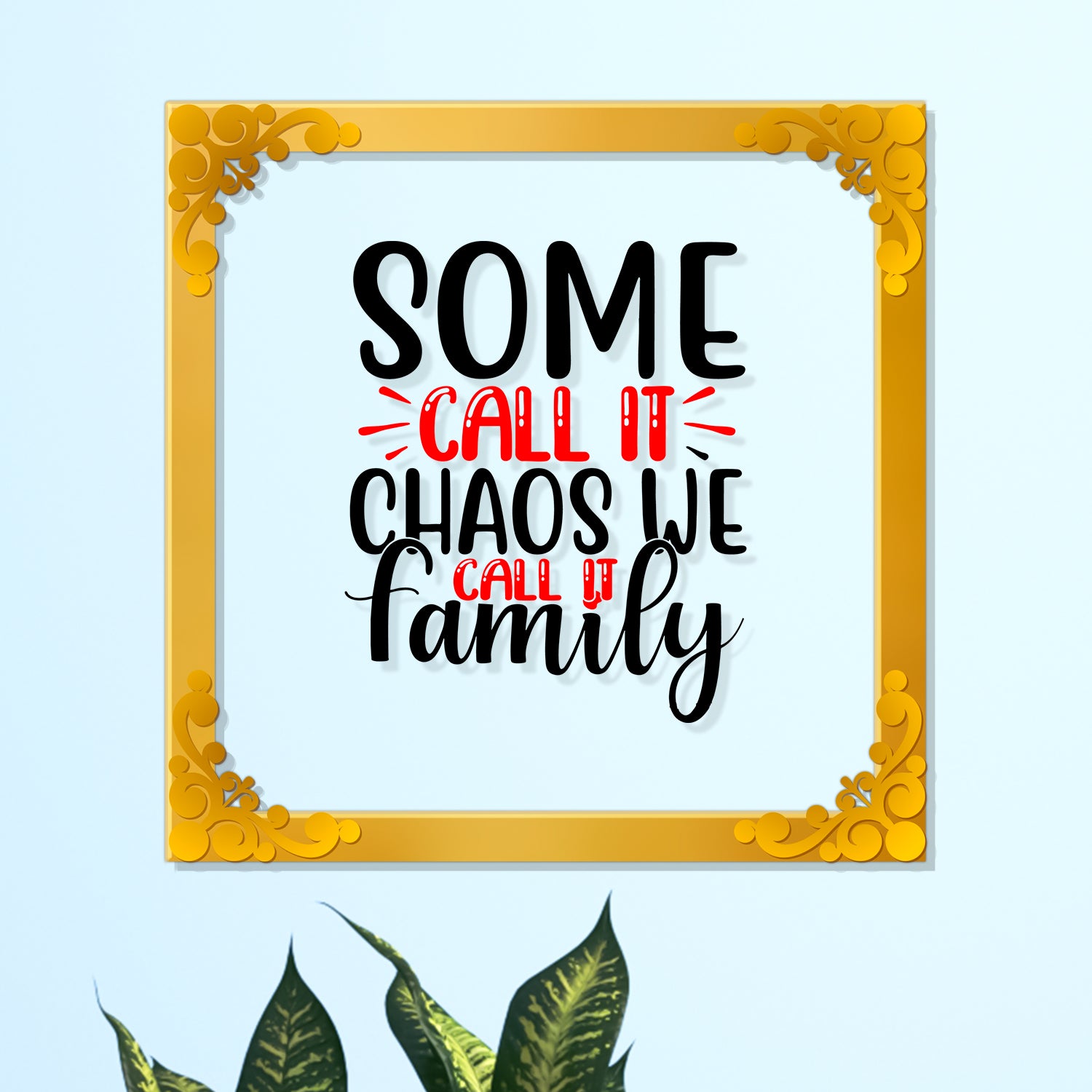 Some call it chaos will call it family Golden Plaque for Gifting, Wall Décor Clear UV print with Golden Border-237 - 8x8 inch