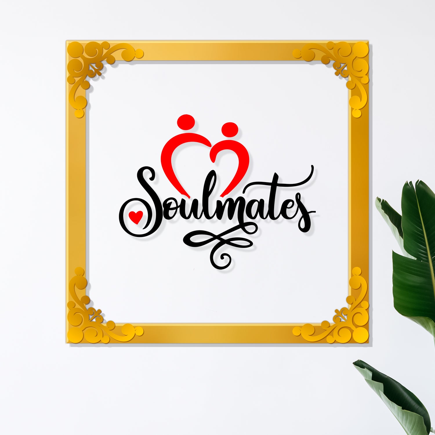 Soulmates Golden Plaque for Gifting, Wall Decor Clear UV print with Golden Border-190 - 8x8 inch