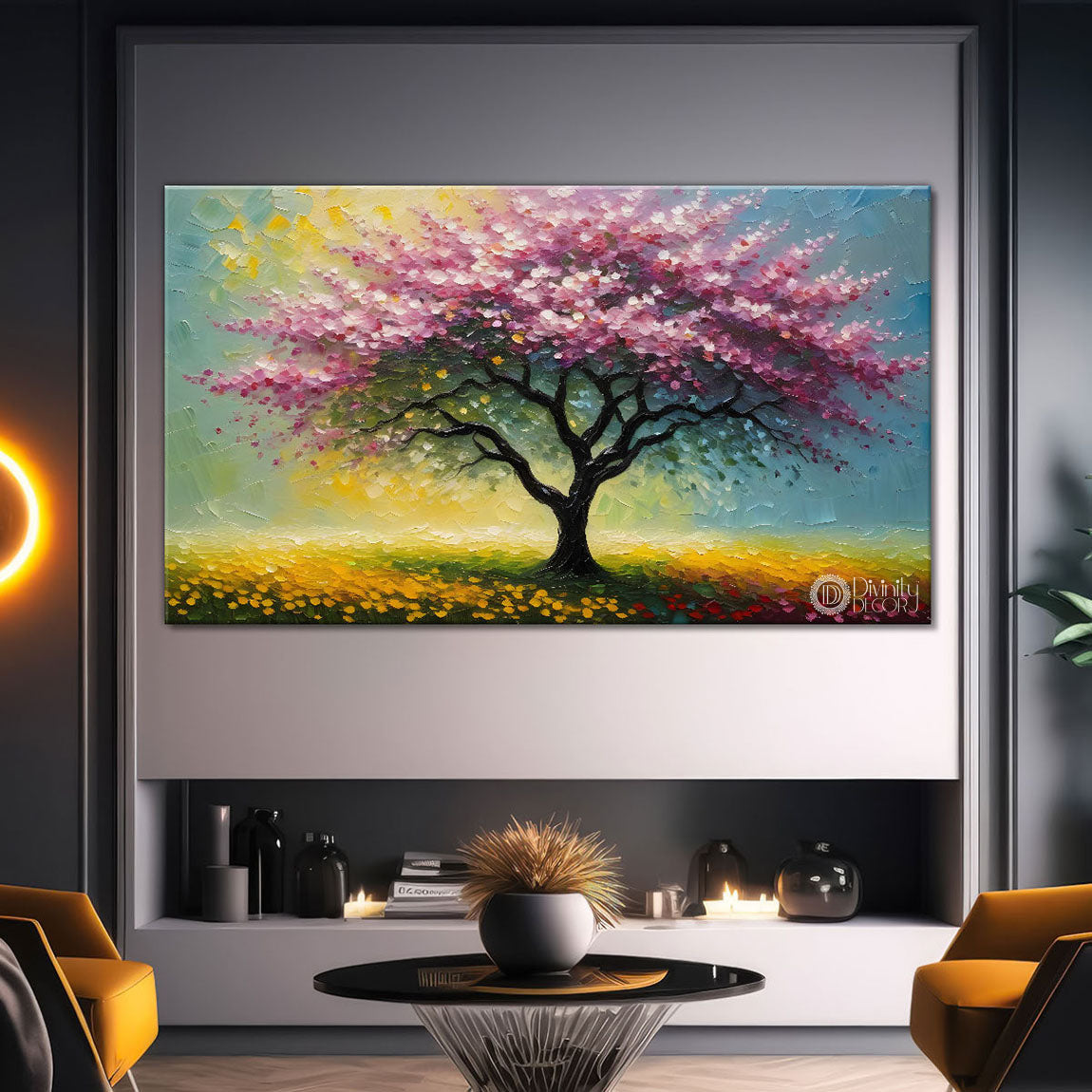 Spring tree in textured modern art- Design - Tree-187 - Without Frame - Only Printed Canvas / 18x30 inches