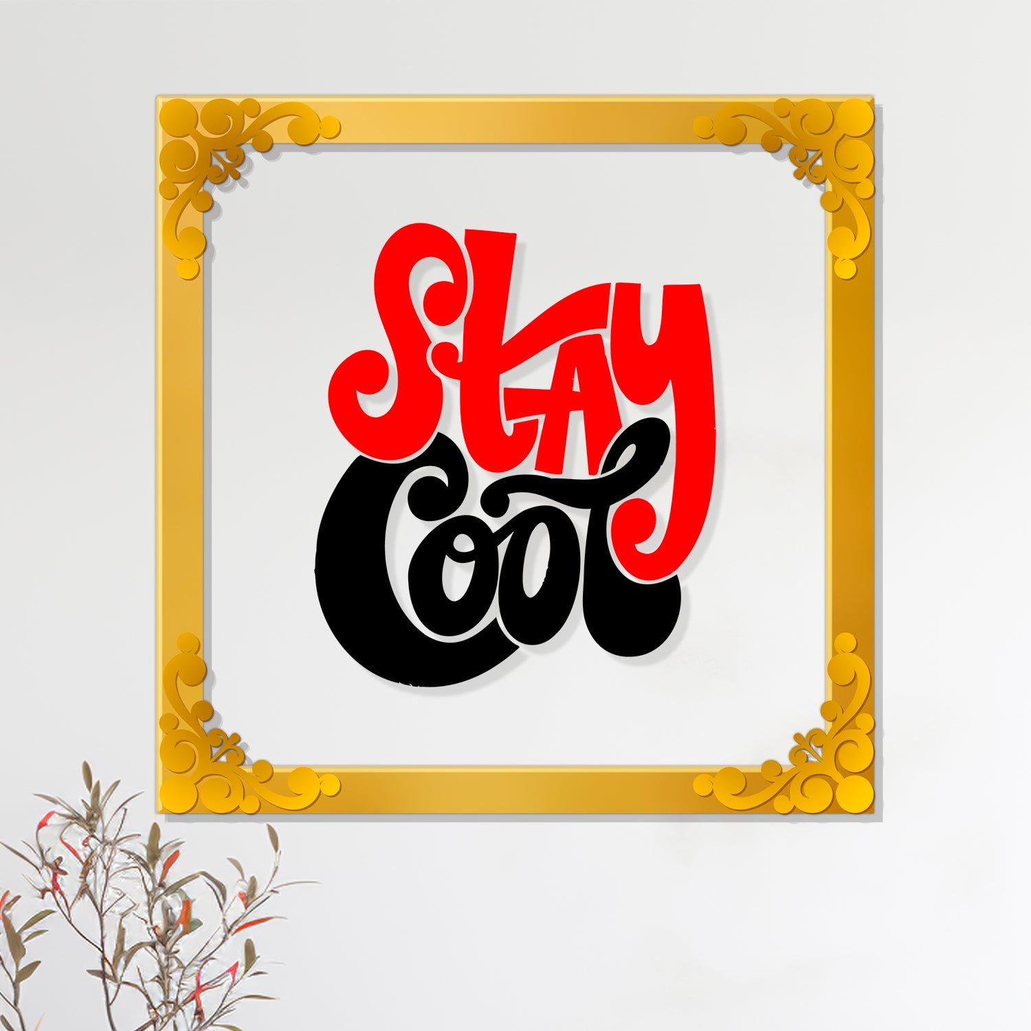 Stay cool Golden Plaque for Gifting, Wall Decor Clear UV print with Golden Border-9 - 8x8 inch