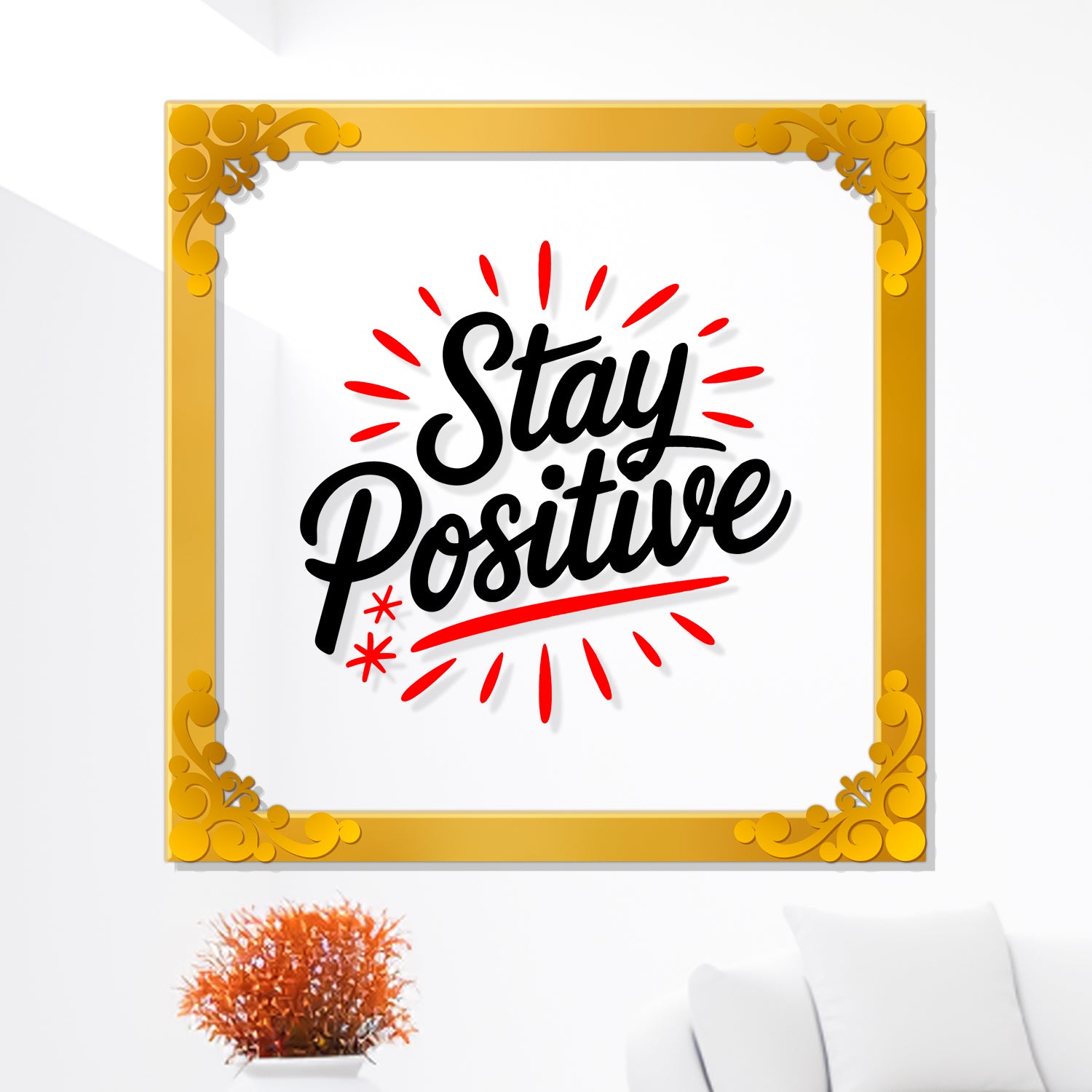 Stay positive Golden Plaque for Gifting, Wall Décor Clear UV print with Golden Border-278 - 8x8 inch