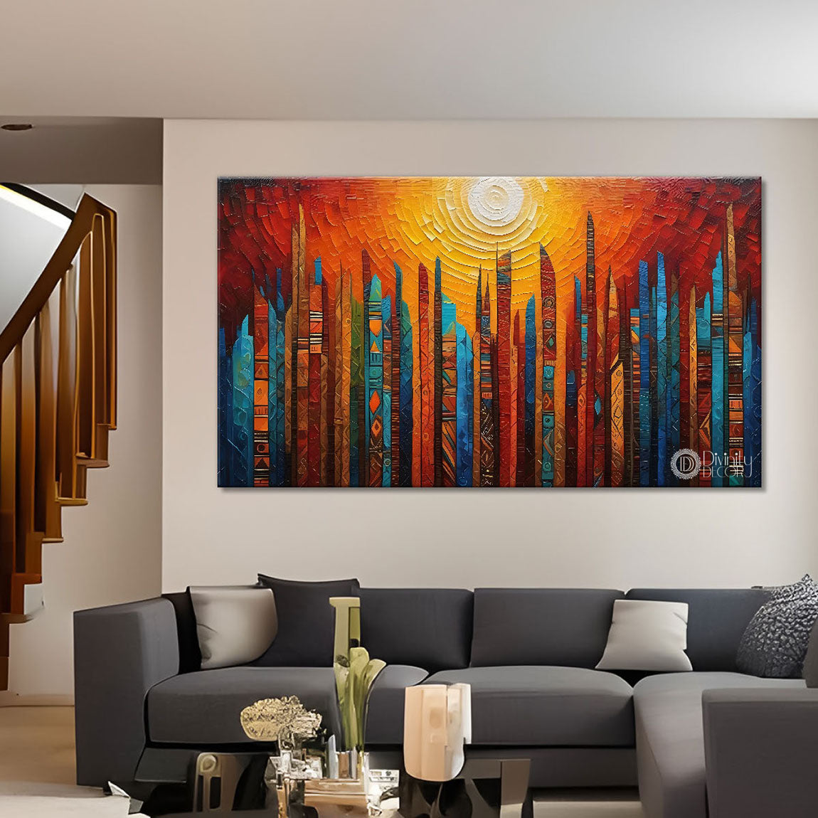 Sunrise textured modern art Canvas Painting - Design - Modern-L-78 - Without Frame - Only Printed Canvas / 18x30 inch