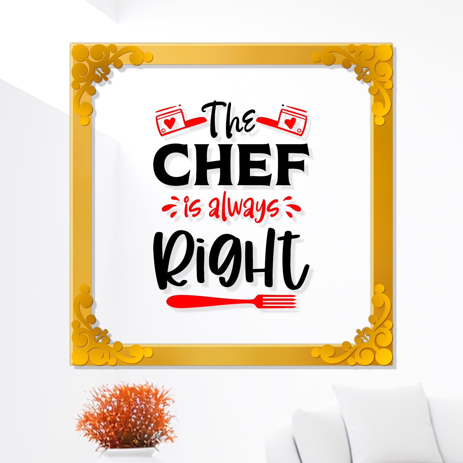 The chef is always right Golden Plaque for Gifting, Wall Decor Clear UV print with Golden Border-148 - 8x8 inch