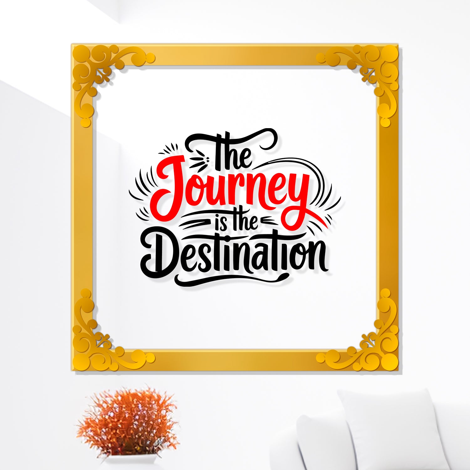 The journey is the destination Golden Plaque for Gifting, Wall Décor Clear UV print with Golden Border-268 - 8x8 inch
