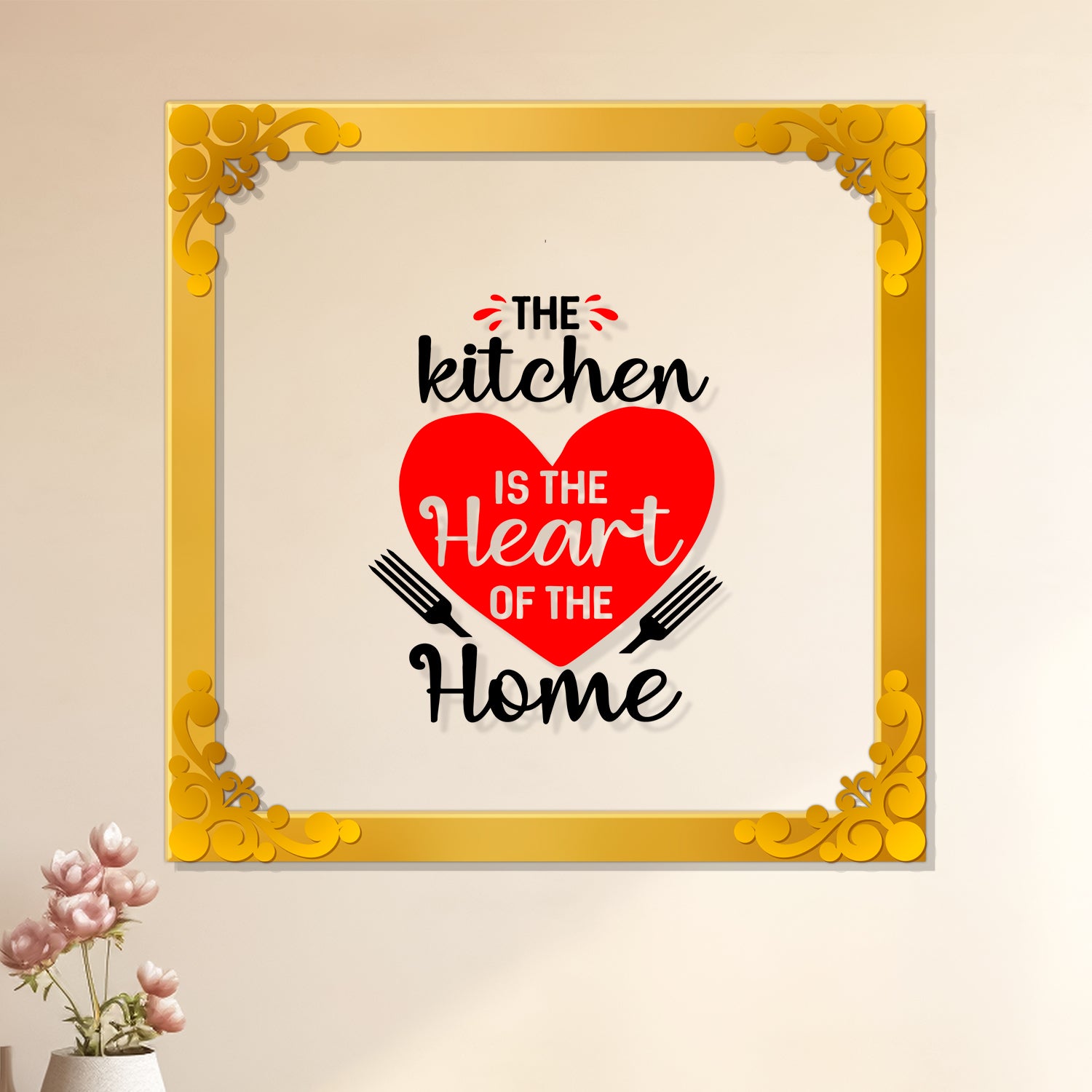 The kitchen is heart of the home Golden Plaque for Gifting, Wall Decor Clear UV print with Golden Border-131 - 8x8 inch