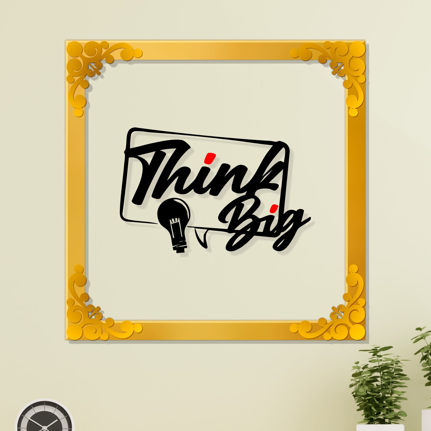 Think big Golden Plaque for Gifting, Wall Decor Clear UV print with Golden Border-162 - 8x8 inch