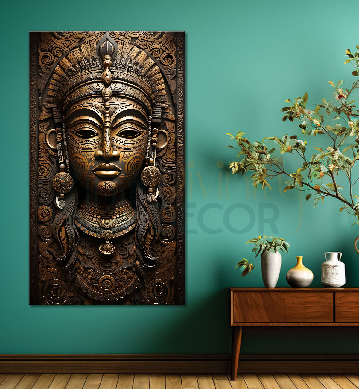 Egyptian face with dark golden modern art painting Canvas Painting - Design - Modern-V-40 - Without Frame - Only Printed Canvas / 18x30 inch