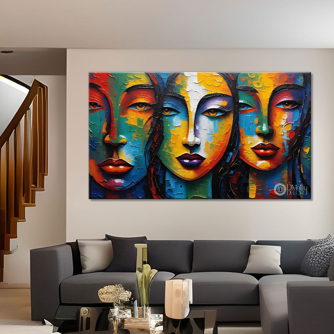 Multiple faces in textured modern art Canvas Painting - Design - Modern-L-305 - Without Frame - Only Printed Canvas / 18x30 inch