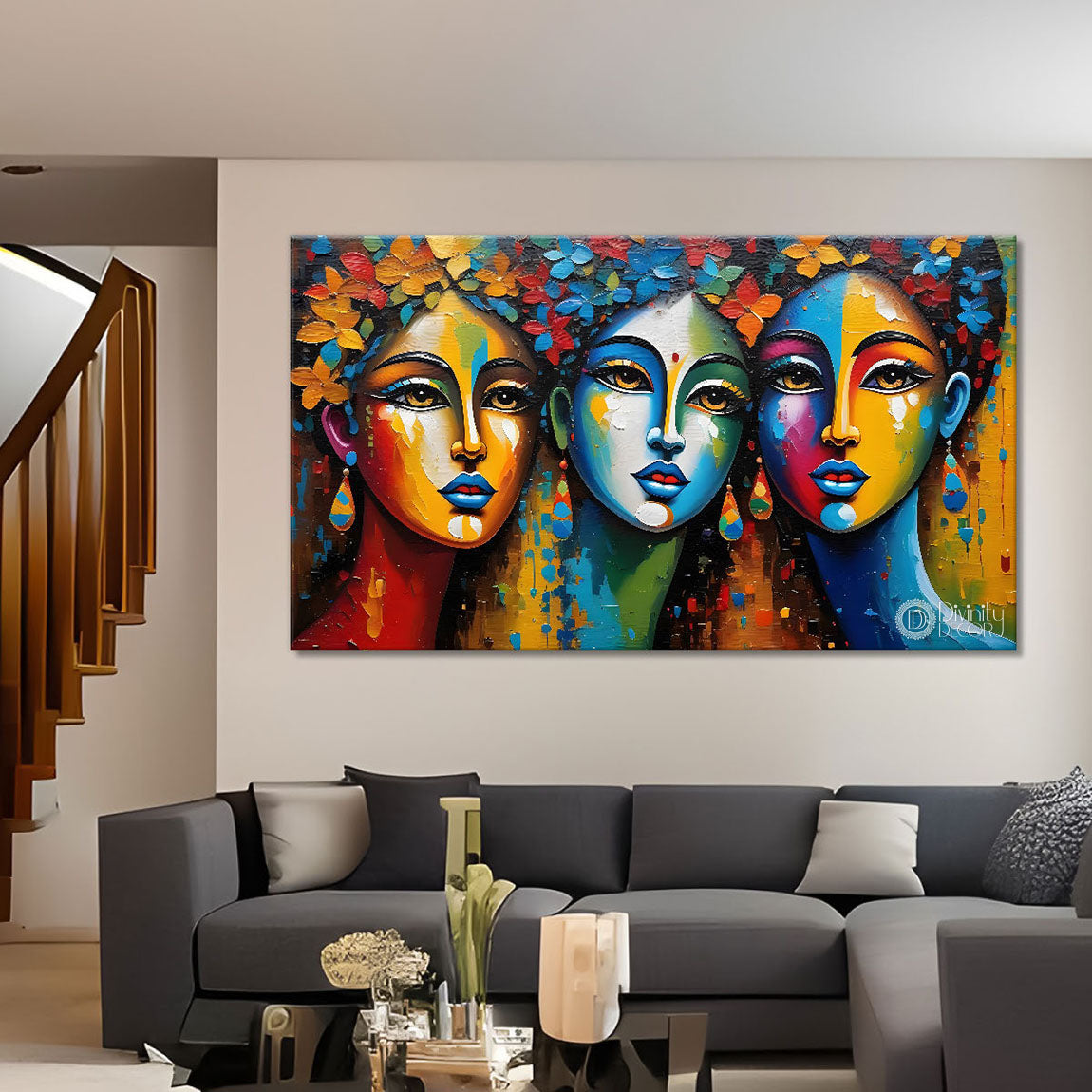 Multiple faces in textured modern art Canvas Painting - Design - Modern-L-313 - Without Frame - Only Printed Canvas / 18x30 inch