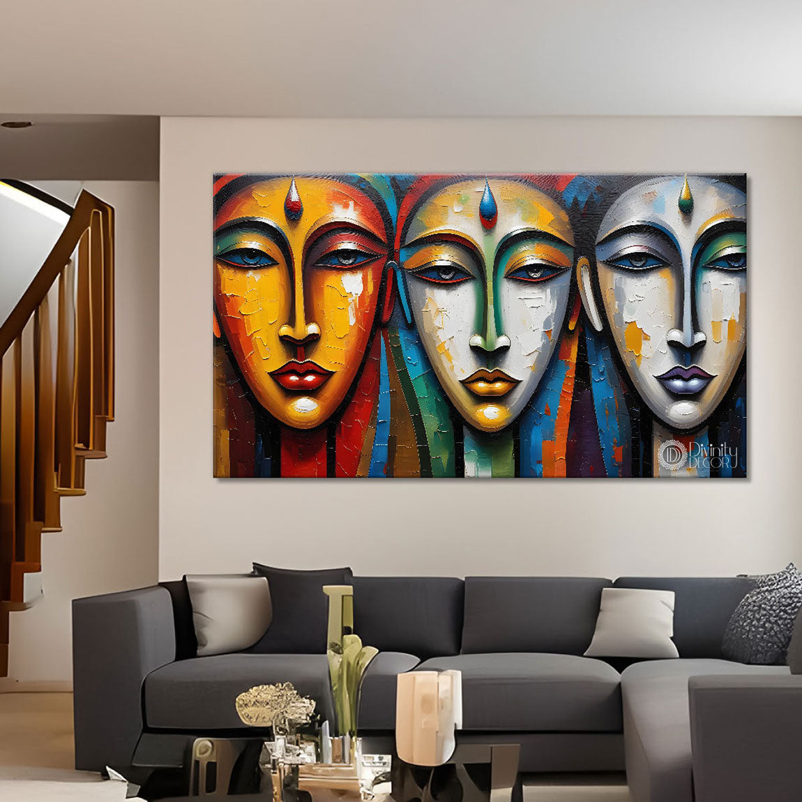 Multiple faces in textured modern art Canvas Painting - Design - Modern-L-319 - Without Frame - Only Printed Canvas / 18x30 inch