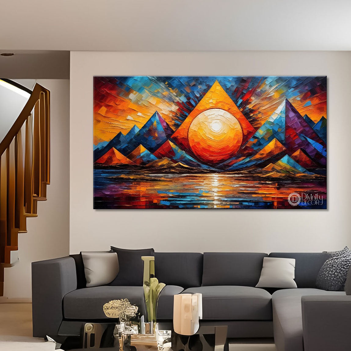Sunset view textured modern art Canvas Painting - Design - Modern-L-282 - Without Frame - Only Printed Canvas / 18x30 inch