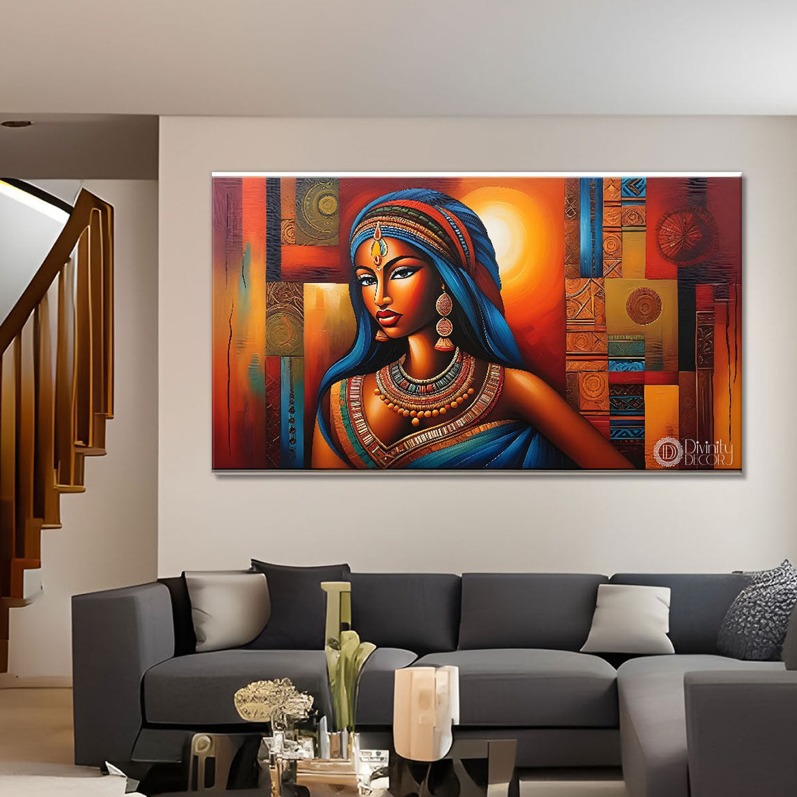 Tribal lady with bright background textured art Canvas Painting - Desi – Divinity Decor index