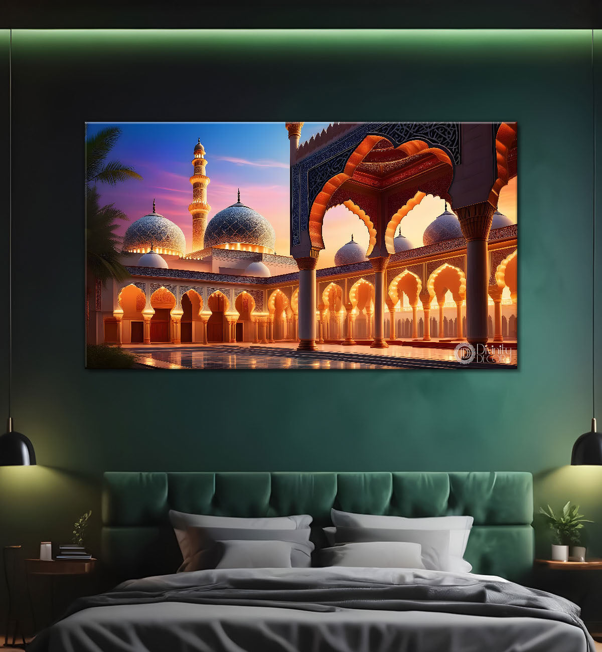 Beautiful Islamic mosque with sunset textured oil painting Canvas Painting - Islamic paintings - 49 - Without Frame - Only Printed Canvas / 18x30 inches