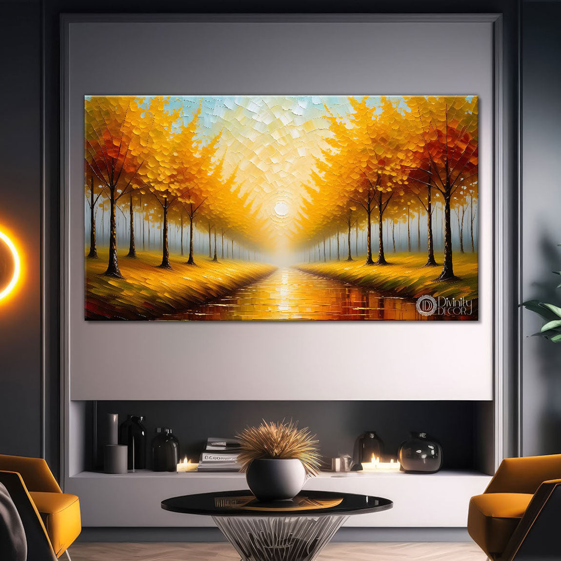 Colorful tree in textured modern art- Design - Tree-260 - Without Frame - Only Printed Canvas / 18x30 inches
