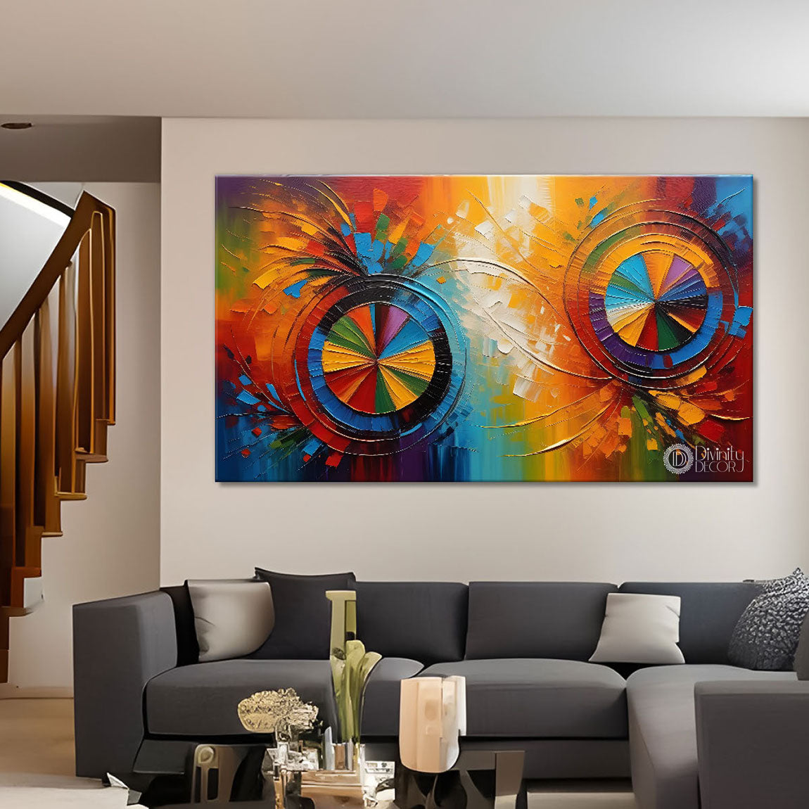 Colorful two wheel pattern textured art Canvas Painting - Design - Modern-L-208 - Without Frame - Only Printed Canvas / 18x30 inch