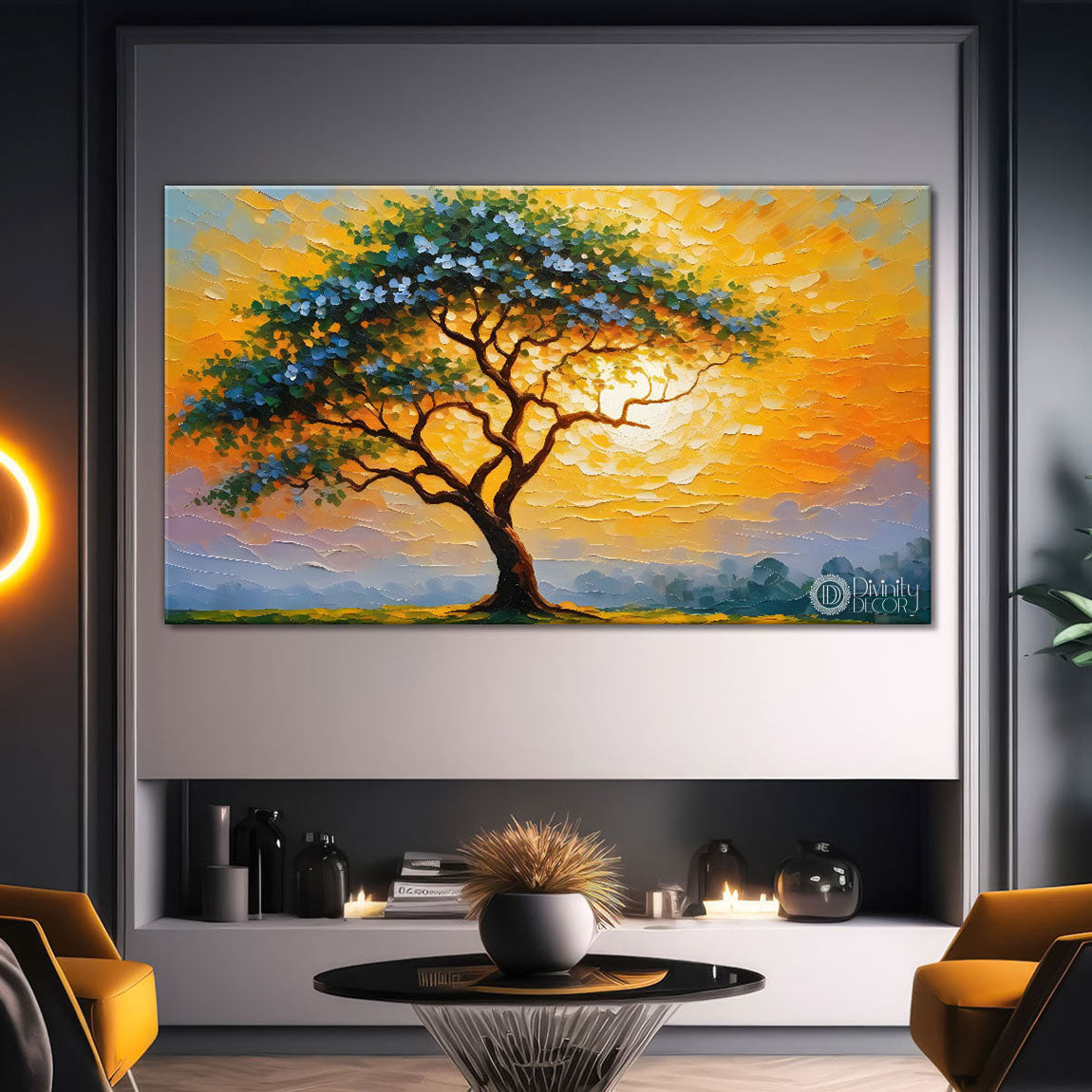 Green tree in bright textured modern art- Design - Tree-300 - Without Frame - Only Printed Canvas / 18x30 inches