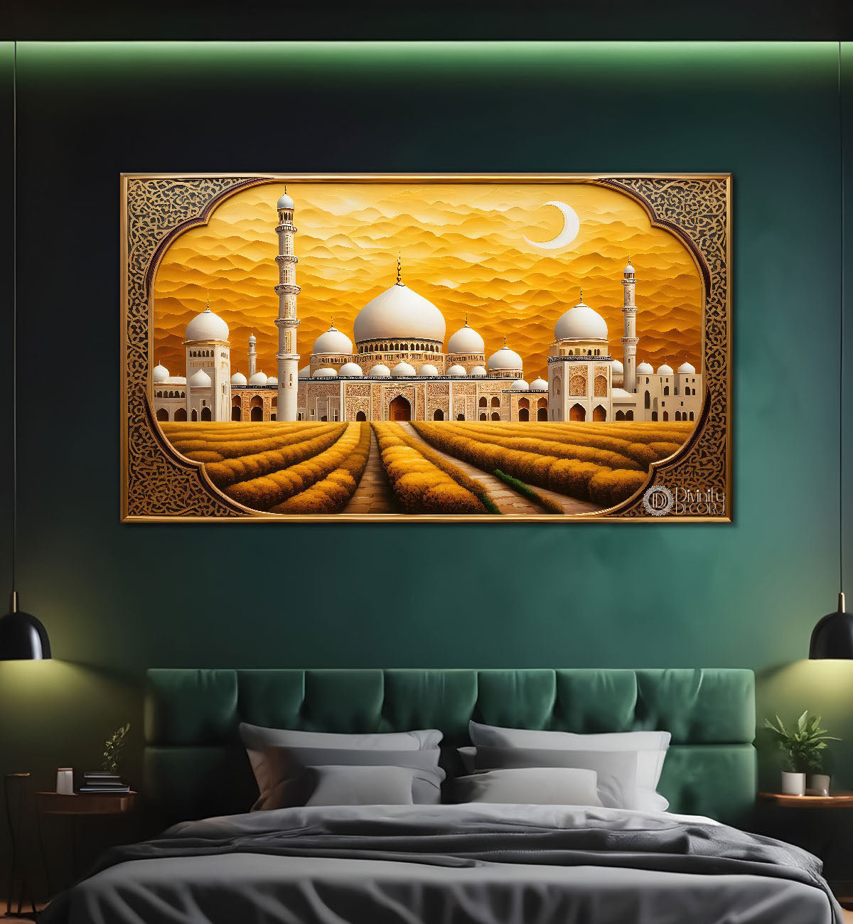 Islamic mosque in bright textured oil painting Canvas Painting - Islamic paintings - 40 - Without Frame - Only Printed Canvas / 18x30 inches