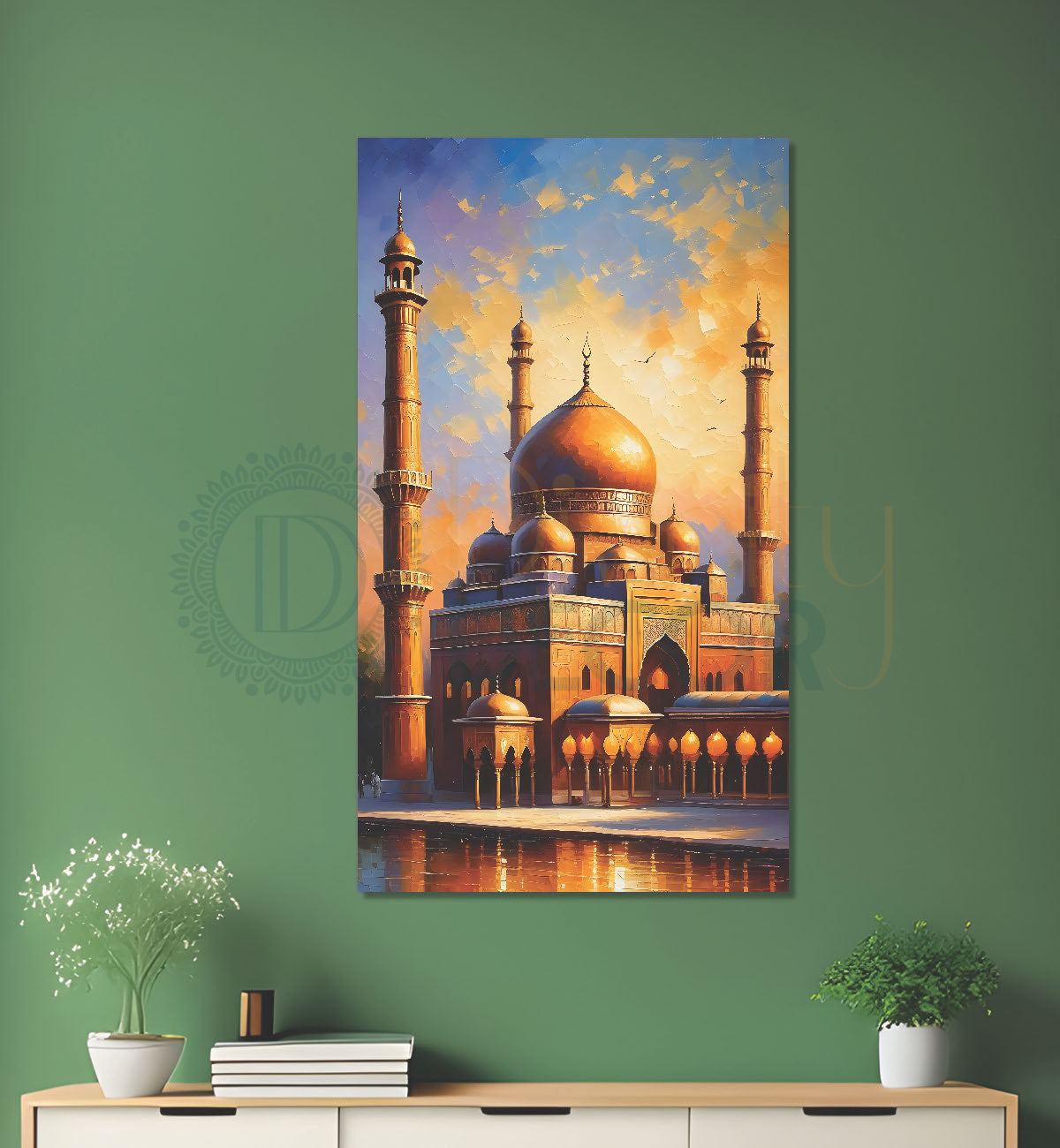 Islamic mosque with bright colours modern art - Islamic paintings-V-2 - Without Frame - Only Printed Canvas / 18x30 inches