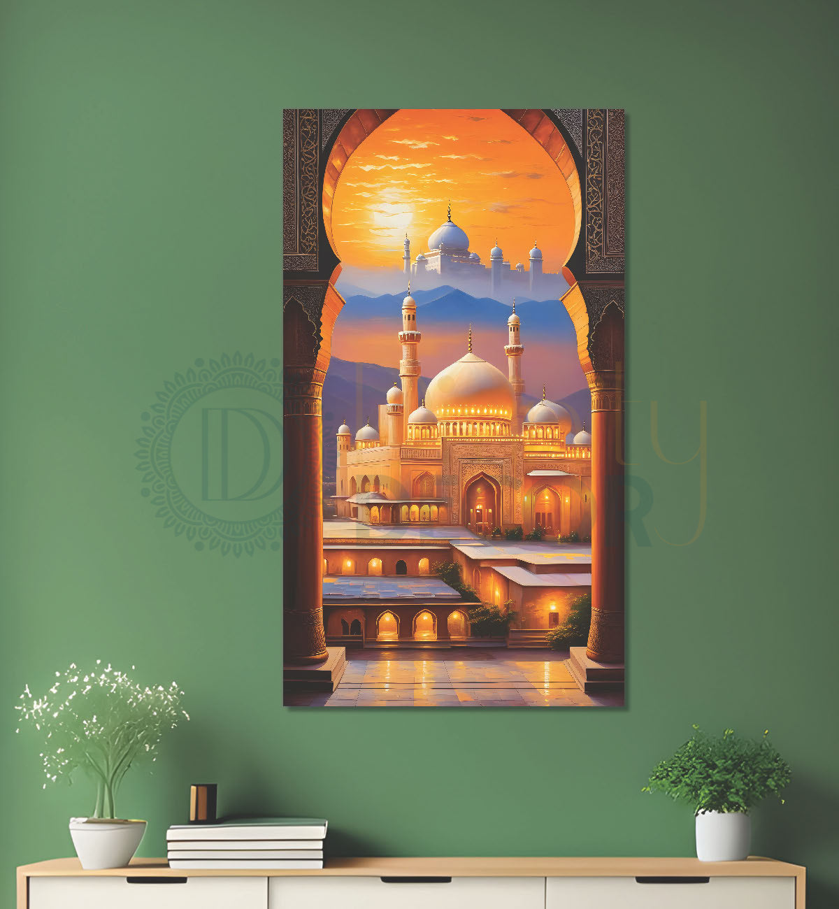 Islamic mosque with colourful background modern art - Islamic paintings-V-11 - Without Frame - Only Printed Canvas / 18x30 inches