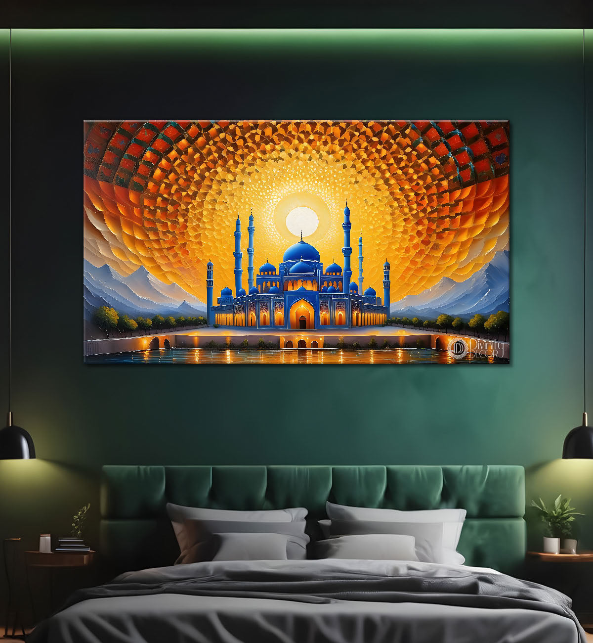 Islamic mosque with sunrise oil painting Canvas Painting - Islamic paintings - 29 - Without Frame - Only Printed Canvas / 18x30 inches