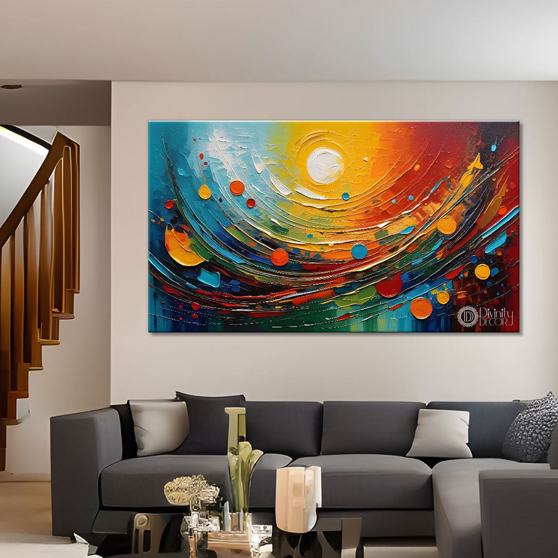 Sun with rays textured colorful art Canvas Painting - Design - Modern-L-200 - Without Frame - Only Printed Canvas / 18x30 inch