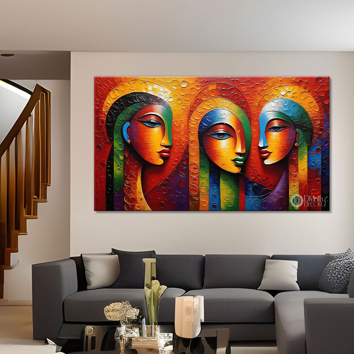 Three modern ladies face textured art Canvas Painting - Design - Modern-L-215 - Without Frame - Only Printed Canvas / 18x30 inch