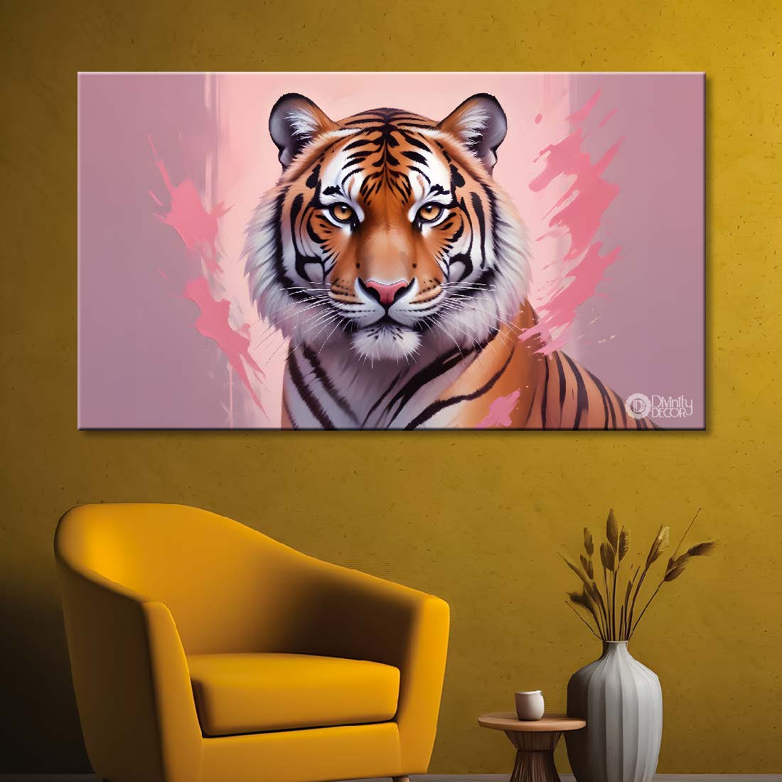 Tiger in pink textured background art.- Design - Animal -66 - Without Frame - Only Printed Canvas / 18x30 inch
