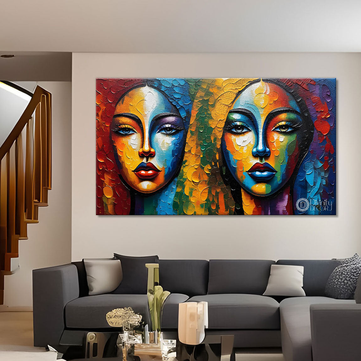 Two colorful textured woman face Canvas Painting - Design - Modern-L-188 - Without Frame - Only Printed Canvas / 18x30 inch