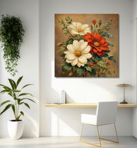 Colourful flowers in brown textured painting Flower-S-527 - Without Frame - Only Printed Canvas