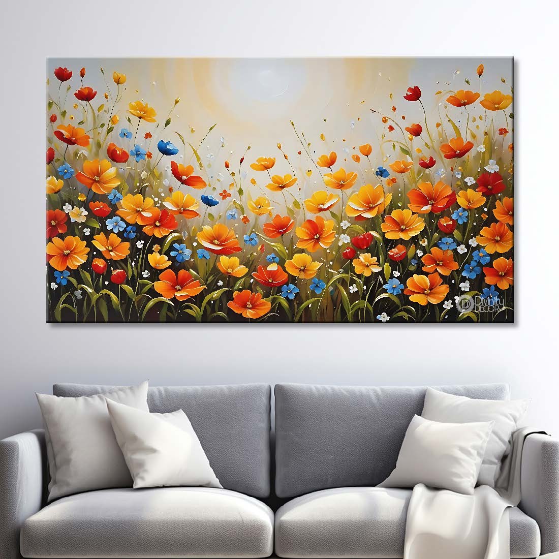 Orange flowers in light background canvas painting- Flower-600 - Without Frame - Only Printed Canvas / 18x30 inches