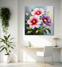 Pink and purple flowers in textured painting Flower-S-400 - Without Frame - Only Printed Canvas