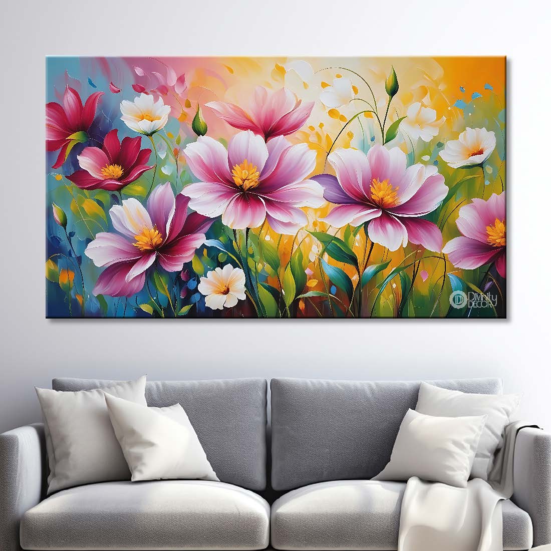 Purple flowers in light background canvas painting- Flower-599 - Without Frame - Only Printed Canvas / 18x30 inches