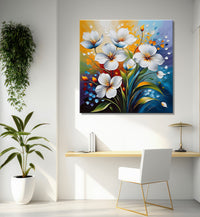 White flower in purple textured painting Flower-S-518 - Without Frame - Only Printed Canvas