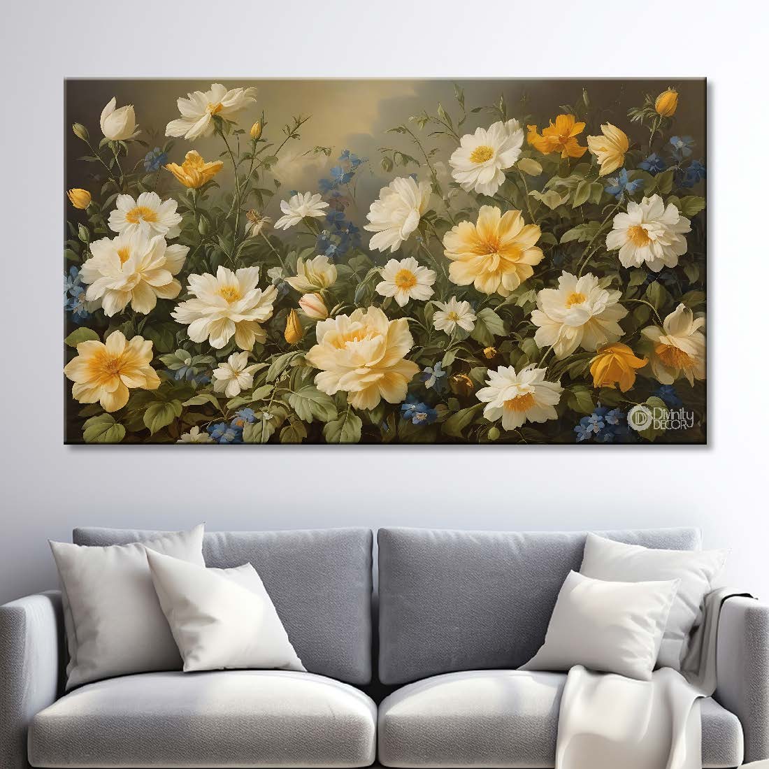 White flowers in green background canvas painting- Flower-601 – Divinity Decor index