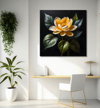 Yellow flower in black textured oil painting - Flower-S-471 – Divinity Decor index