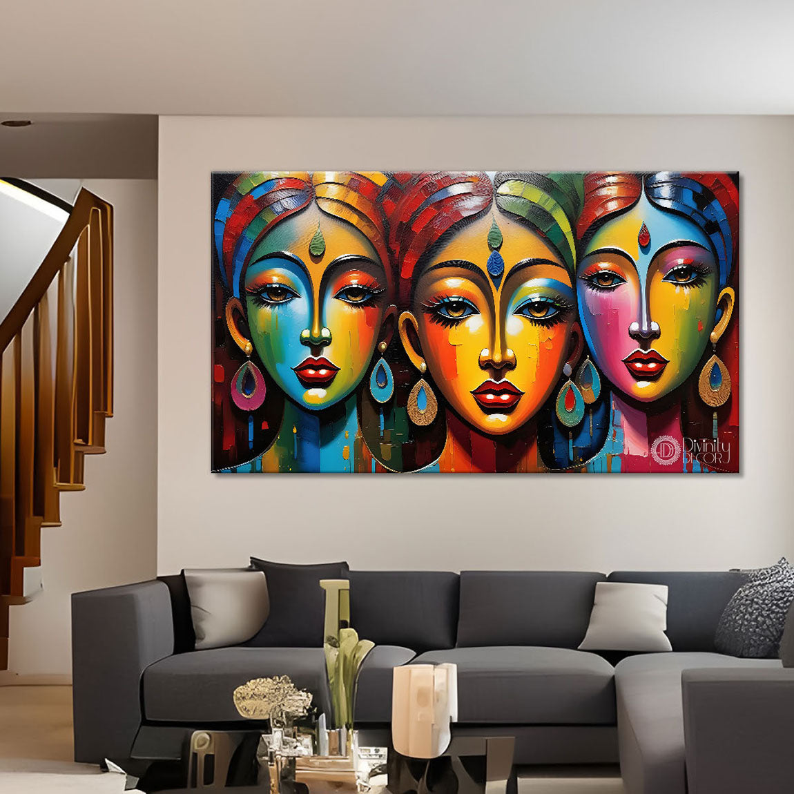 Beautiful tribal women textured modern art Canvas Painting - Design - Modern-L-330 - Without Frame - Only Printed Canvas / 18x30 inch