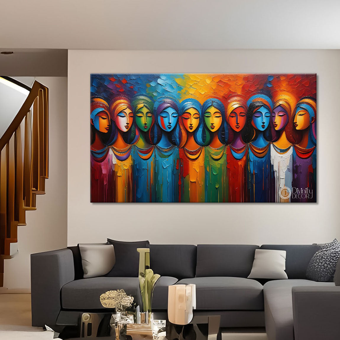 Multiple faces in textured modern art Canvas Painting - Design - Modern-L-365 - Without Frame - Only Printed Canvas / 18x30 inch