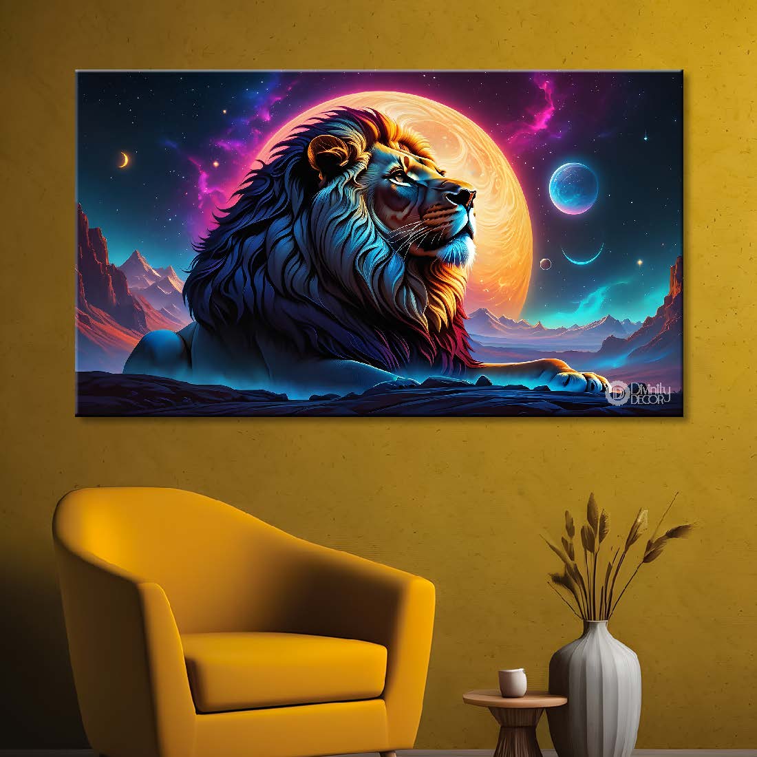Lion with galaxy background textured art. - Design - Animal -135 - Without Frame - Only Printed Canvas / 18x30 inch