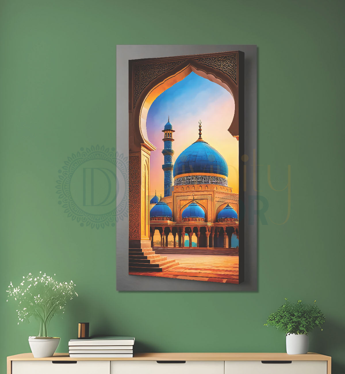 Islamic mosque with beautiful background modern art - Islamic paintings-V-6 - Without Frame - Only Printed Canvas / 18x30 inches