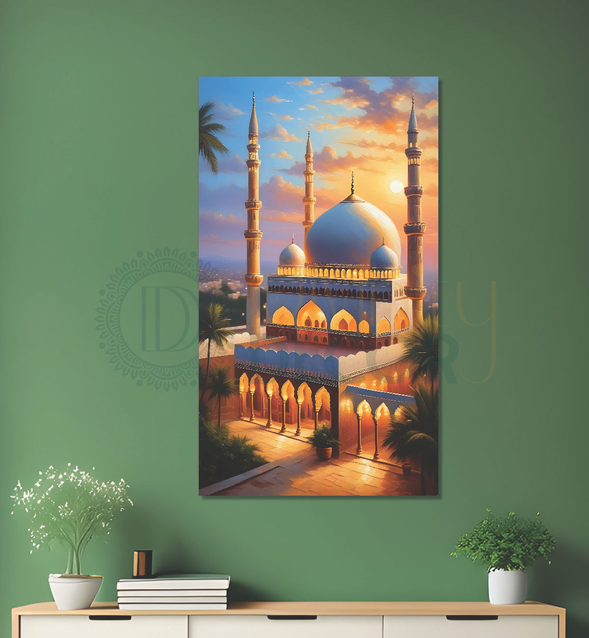Islamic mosque with bright colours modern art - Islamic paintings-V-16 - Without Frame - Only Printed Canvas / 18x30 inches