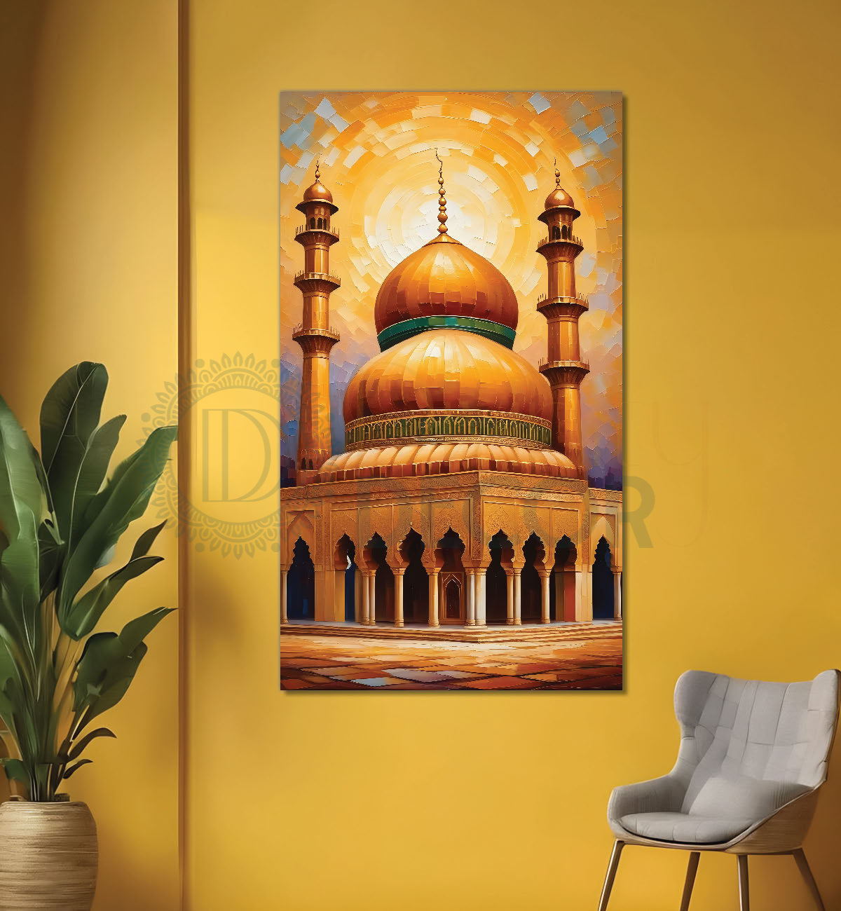 Islamic mosque with bright colours modern art - Islamic paintings-V-17 - Without Frame - Only Printed Canvas / 18x30 inches