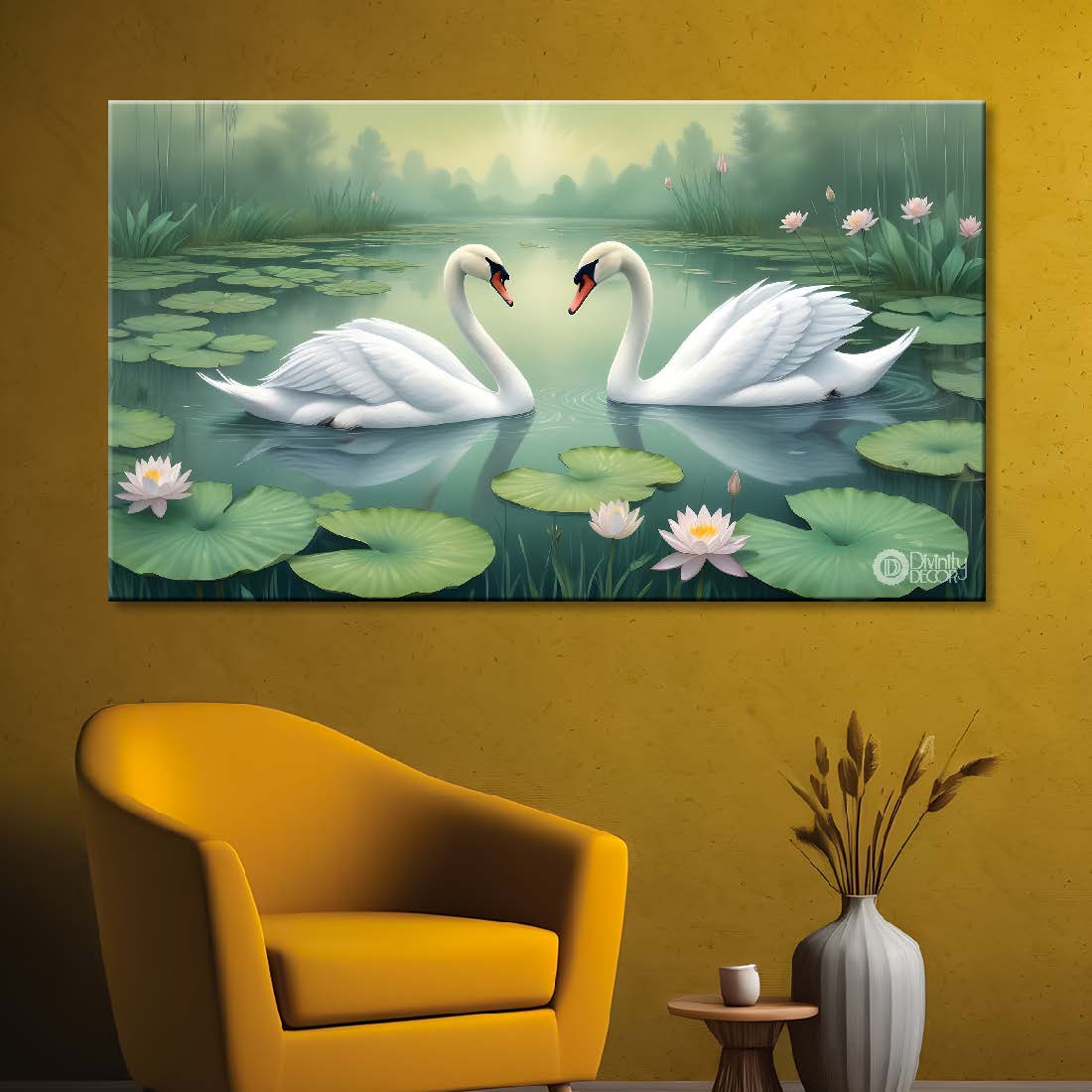 Two Swans floating with lotus textured art. - Design - Animal -29 – Divinity Decor index