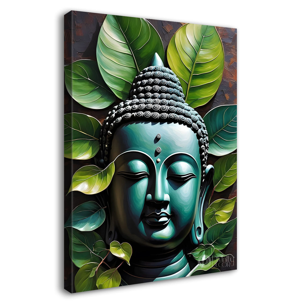 Blue buddha face with green leaves background textured painting - Budd – Divinity Decor index