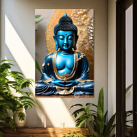 Blue buddha with light background painting - Buddha-V-81 - Without Frame - Only Printed Canvas / 18x30 inch