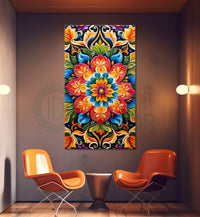 Colourful flower in mandala design textured painting - Flower-V-14 - Without Frame - Only Printed Canvas / 18x30 inches