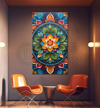 Colourful flower in mandala design textured painting- Flower-V-8 - Without Frame - Only Printed Canvas / 18x30 inches