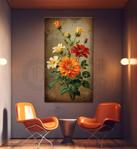 Colourful flowers in light brown background - Flower-V-505 - Without Frame - Only Printed Canvas / 18x30 inches